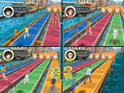 Family Party will have you frantically shaking your Wii remote to make your character run, and mashing the A and B buttons to jump over hurdles and smash through paper walls in track-and-field type events. You'll also be kept on the edge of your seat as you hold the remote sideways and manipulate the D pad to get your character across a teetering platform.